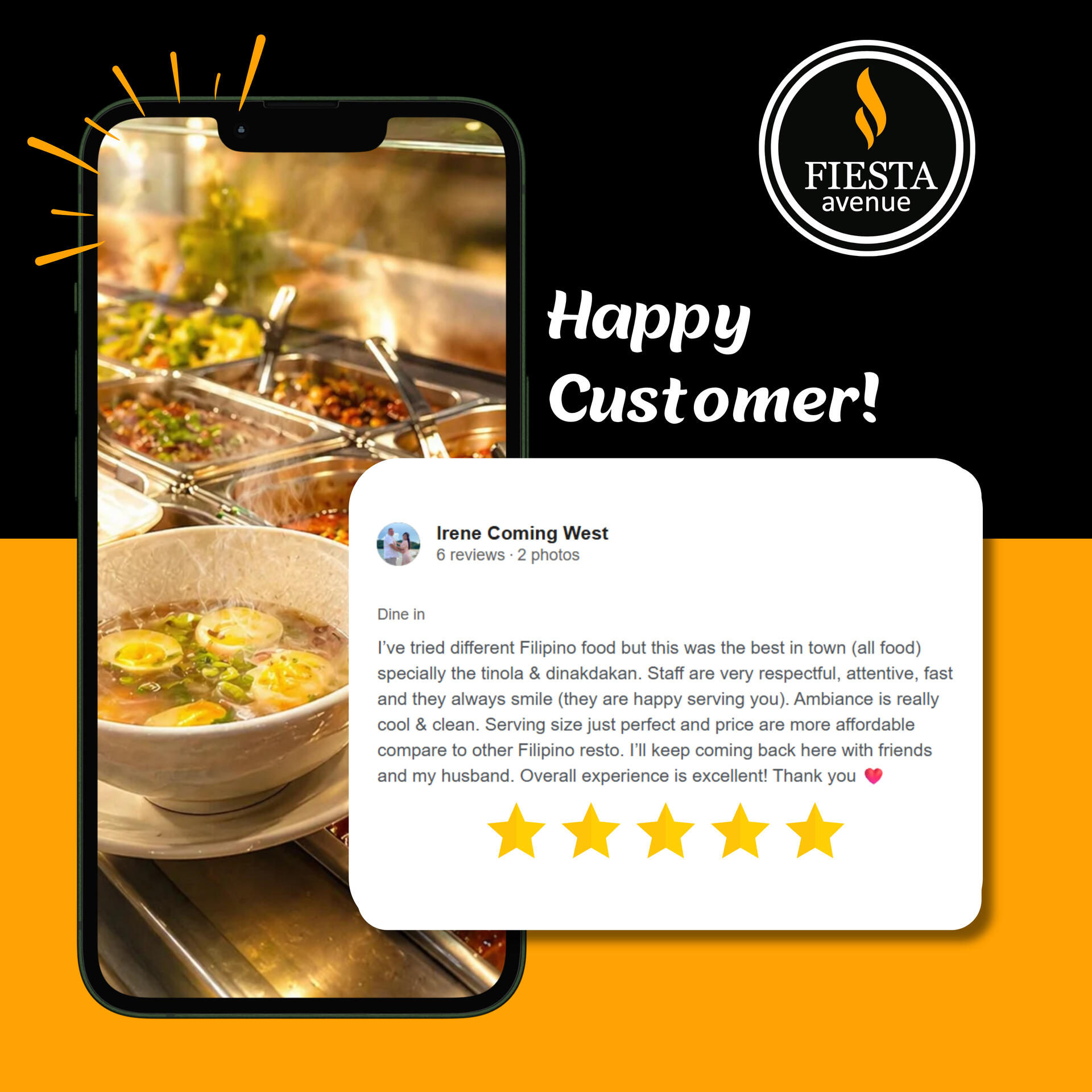 We would greatly appreciate your feedback on your dining experience at Fiesta Avenue today.Please rate it on a scale of 1 to 5, with 5 representing the highest level of satisfaction.